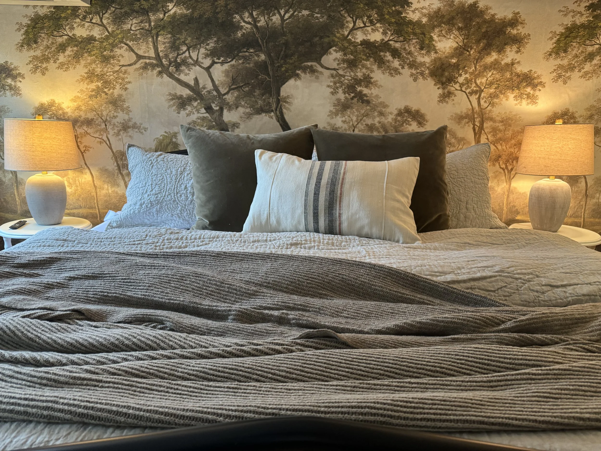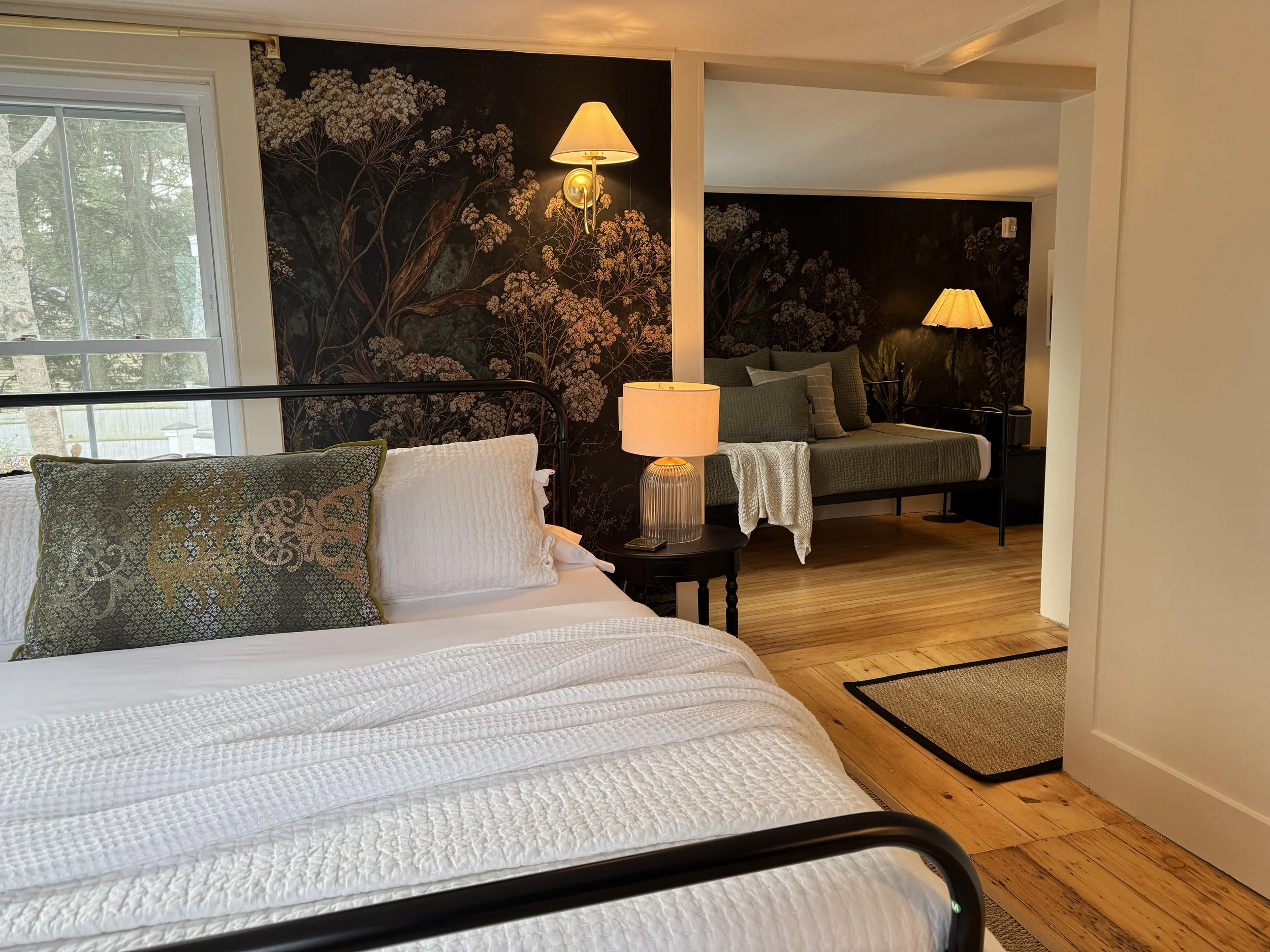 • This luxurious and spacious suite located on the second floor is decorated with vibrant colors, cozy linens and an eye to detail. Guests can relax in a private sitting room with a made up daybed. The separate bedroom features a King bed dressed with lush linens.