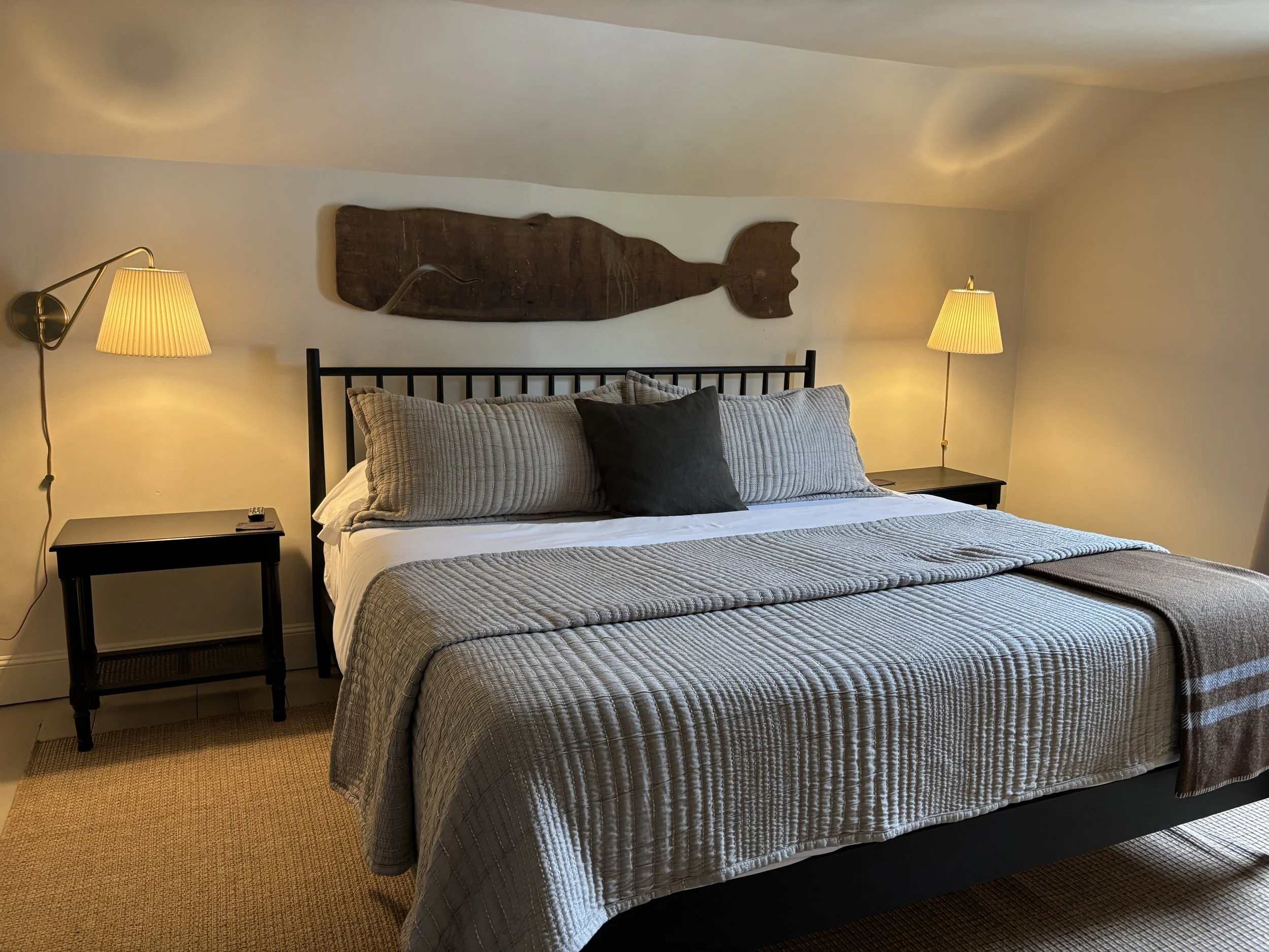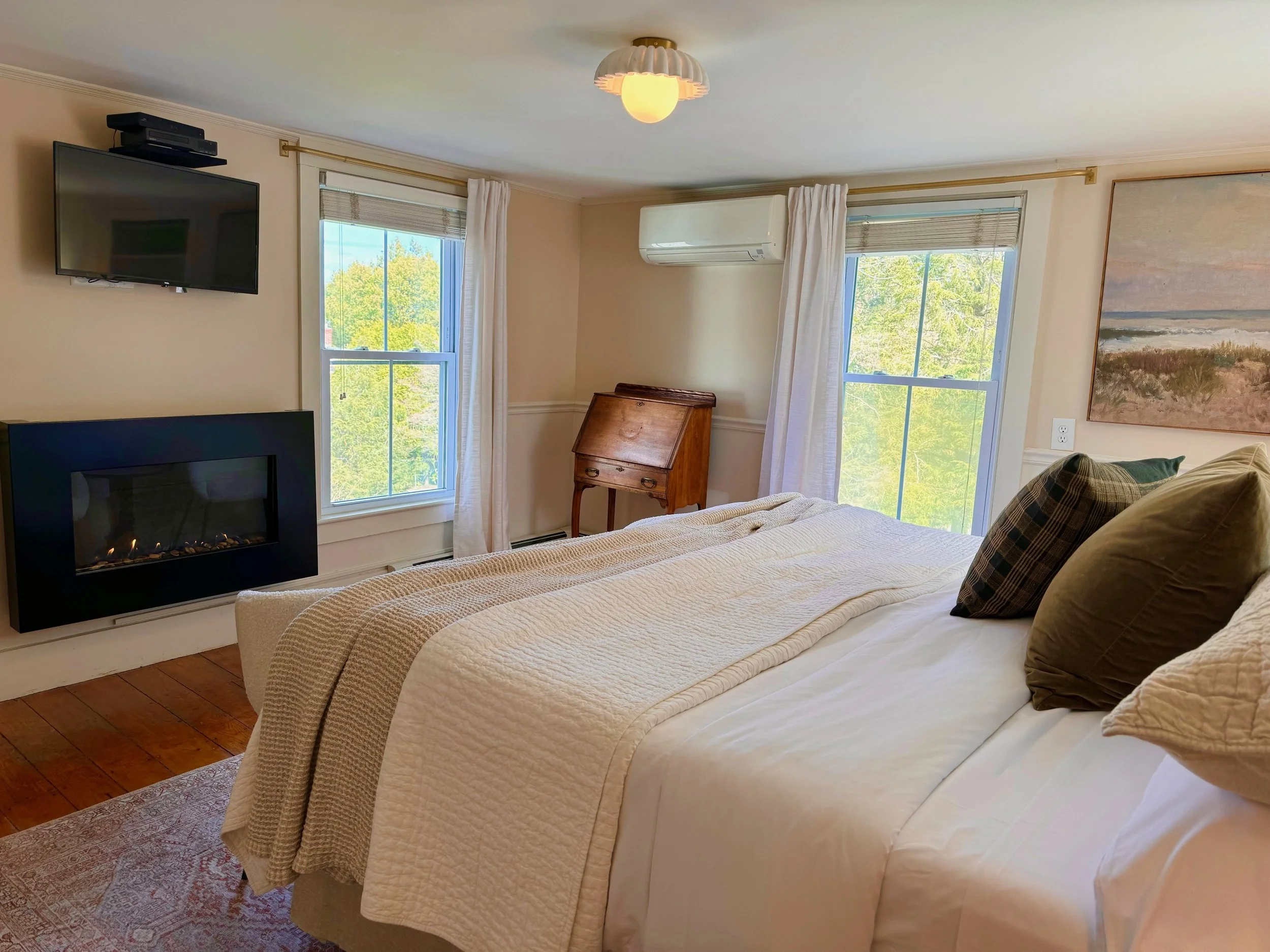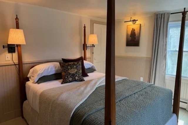 • Tucked away on the second floor, this cozy room is decorated with a soft neutrals and a comfortable reading chair. The queen-sized bed with full bathroom and spacious walk-in shower.